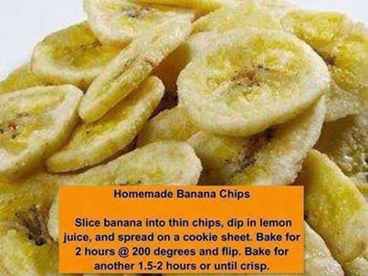 Sweet Potato Chips, Kale chips, Beetroot Chips, etc. You can buy these from health food stores or make your own.